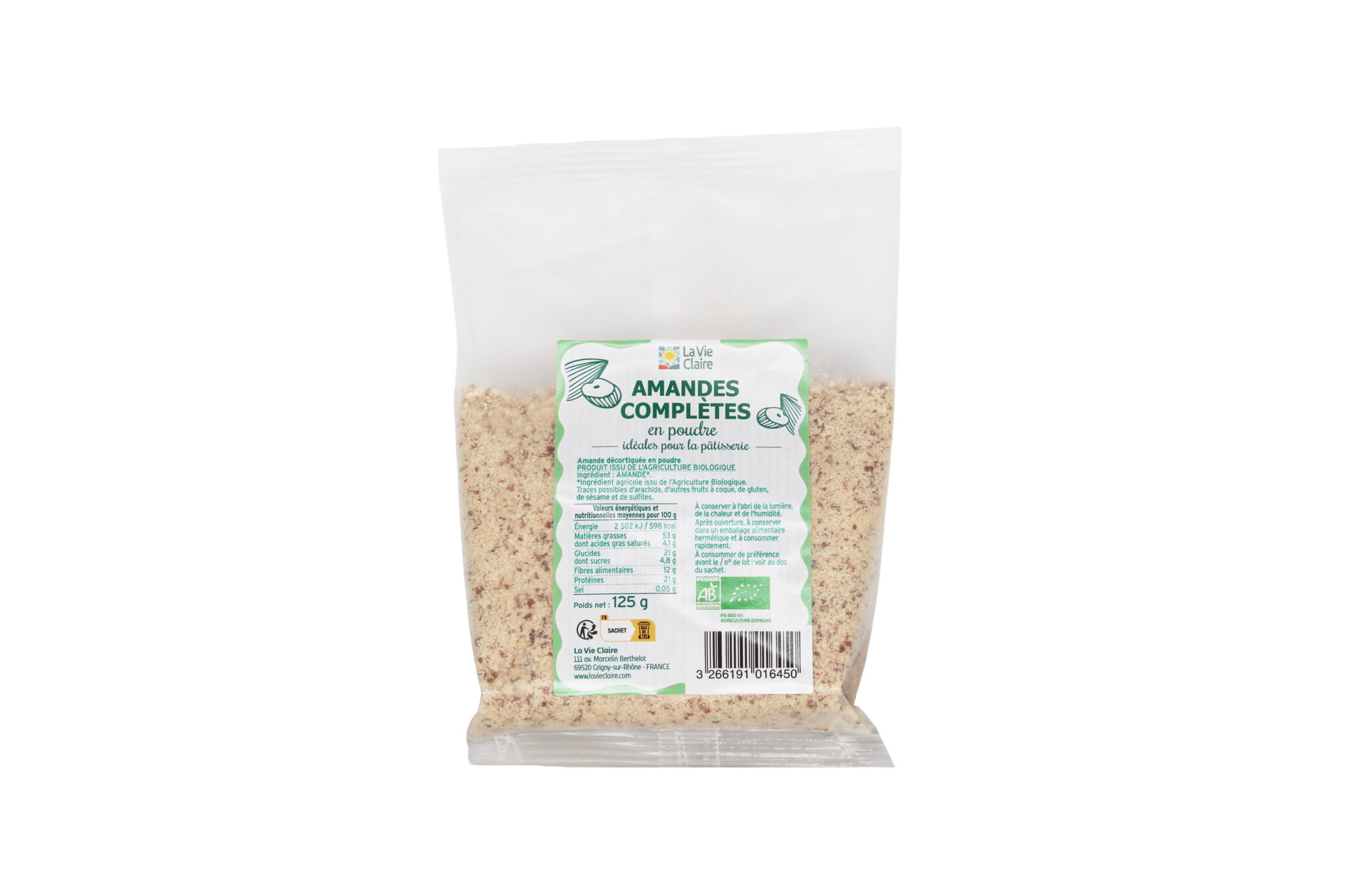 EspagneIngrédient : AMANDE*. *Ingrédient agricole issu de l'agriculture biologique